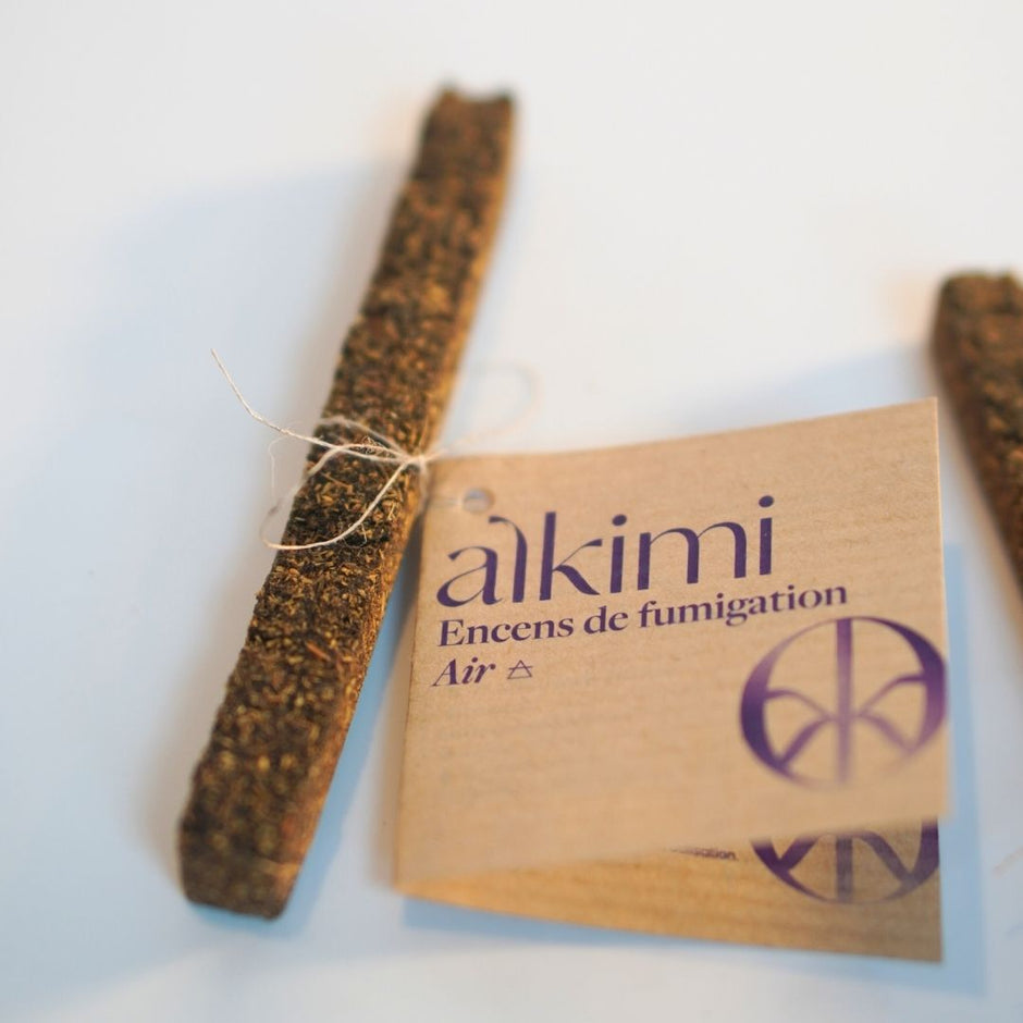 La puissance des plantes brutes, la simplicité d’un encens et d'un Palo Santo. Alkimi réinvente la fumigation avec un format hybride, entre bouquet traditionnel et encens, pensé pour une prise en main, une combustion et une utilisation pratique. Conçu à partir de plantes locales, cet encens de fumigation offre une alternative naturelle et cohérente aux produits de fumigation importés. Une nouvelle manière de purifier, plus simple, plus locale et plus consciente.