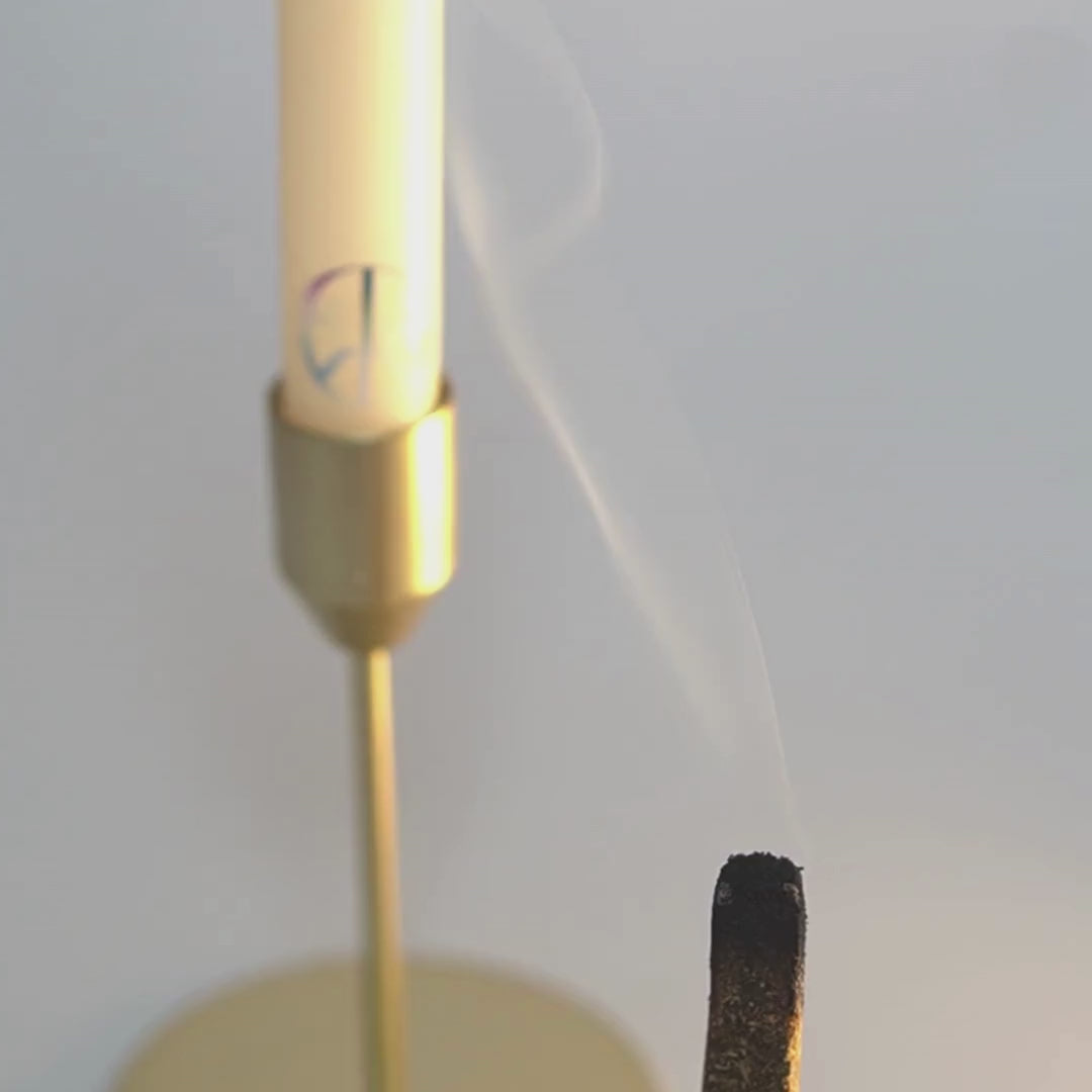 Approchez l’extrémité de l’encens d’une flamme (idéalement une bougie) pendant quelques secondes.